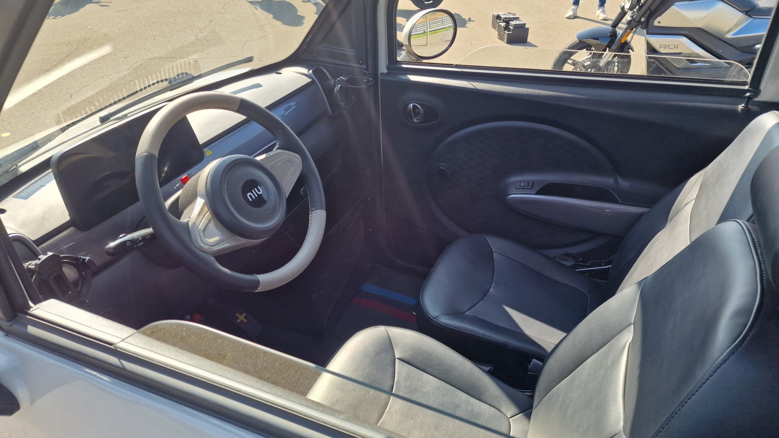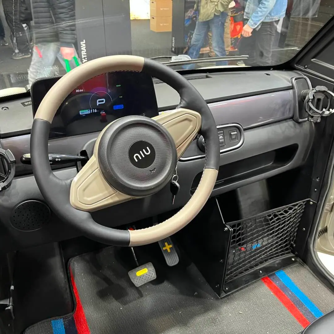 La Niumm est une voiture sns permis à batteries amovibles. Elle se conduit dès 14 ans avec le permis AM.