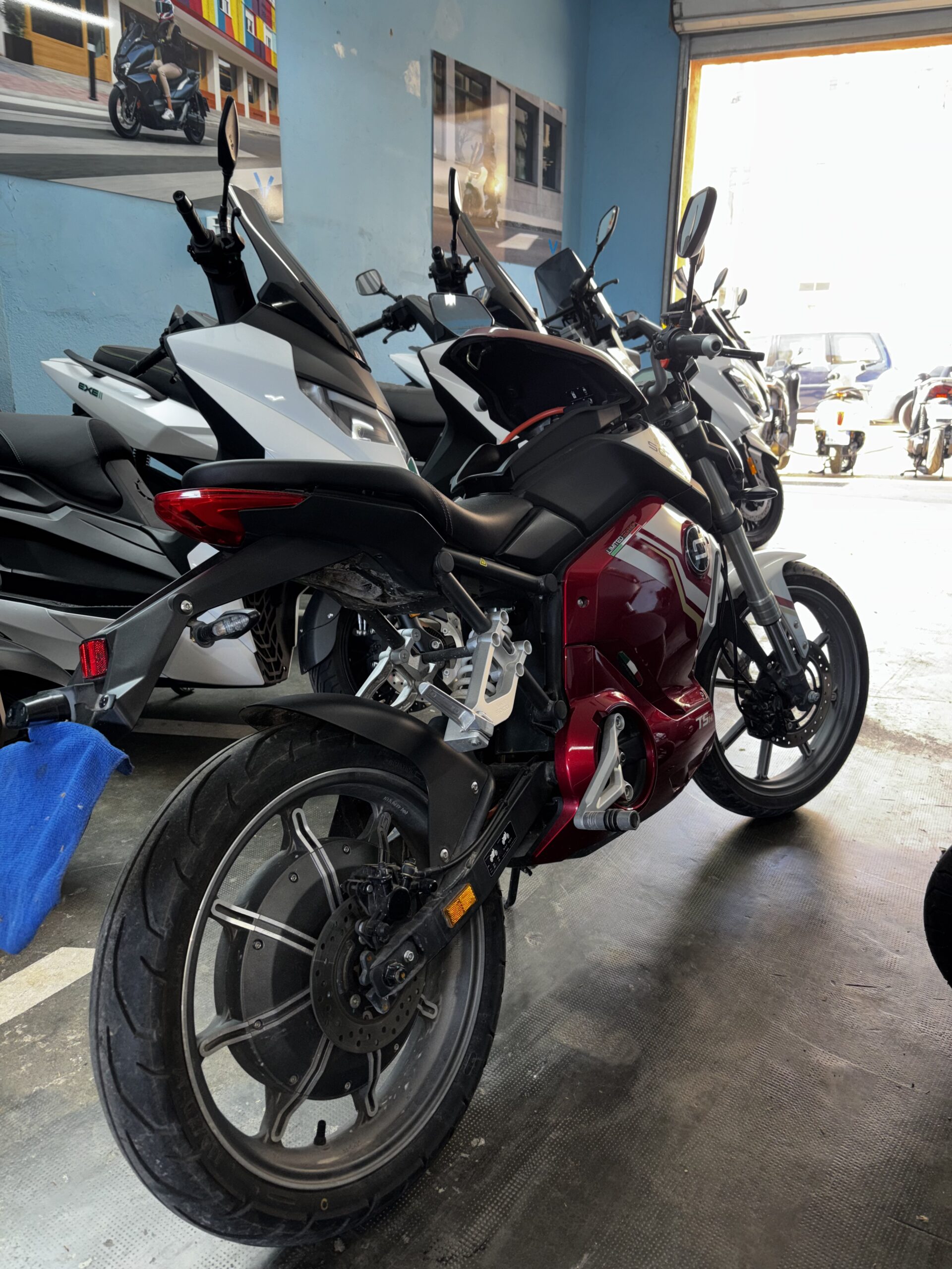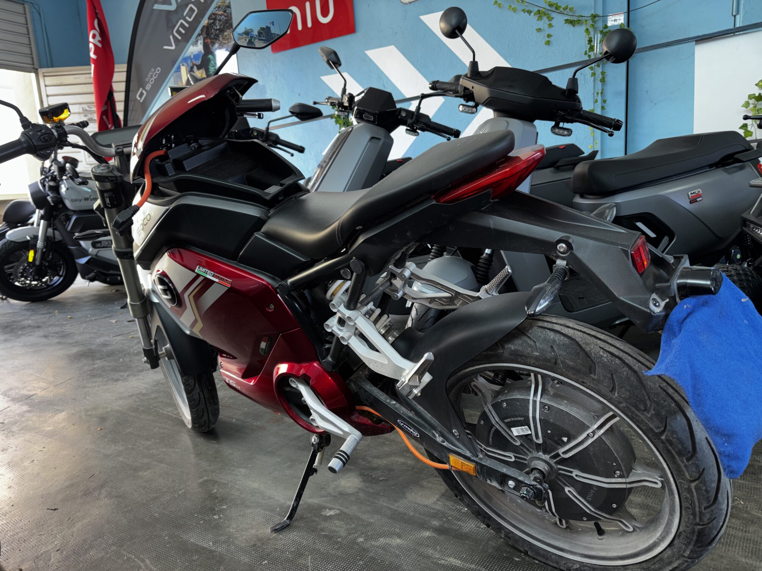 Moto électrique TSX de 2024, 1662 kilomètres au compteur, une batterie amovible, 50 à 80km d’autonomie. Accessible avec un permis AM ou sans permis pour les personnes nées avant 1988.